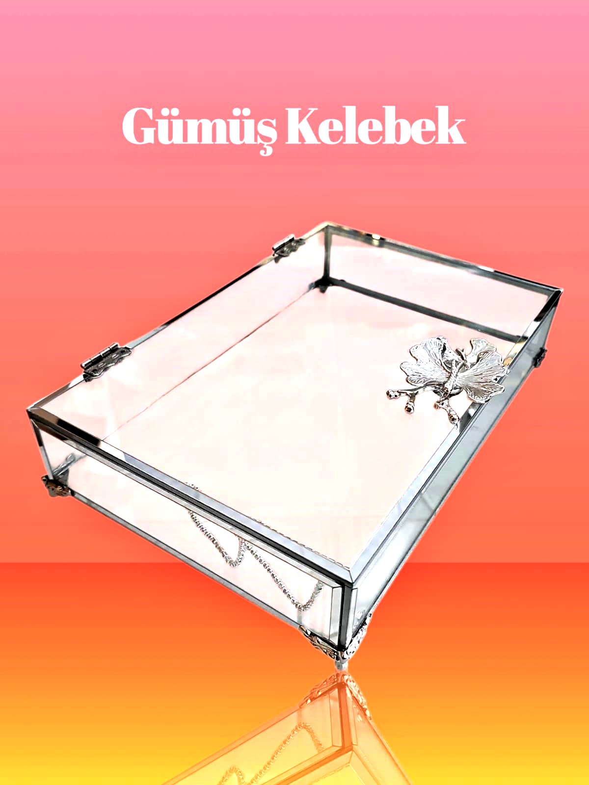 KDD PLEXİ GÜMÜŞ CAM KUTU 25*16 CM AYAKLI - 237