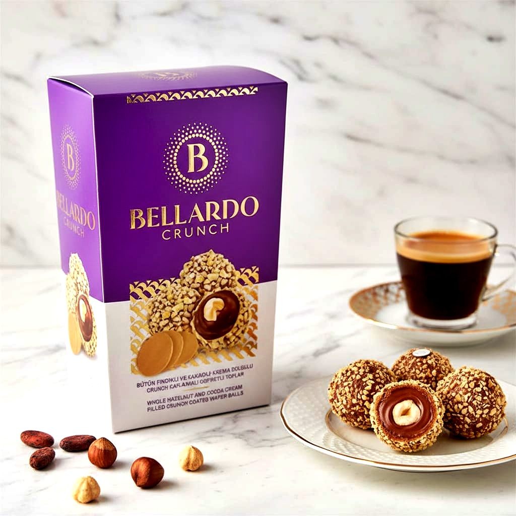 BELLARDO BÜTÜN FINDIKLI VE KAKAO KREMA DOLGULU CRUNCH KAPLAMALI 150 GR (ADET FİYATIDIR. KOLİ İÇİ 12 ADETTİR)-915