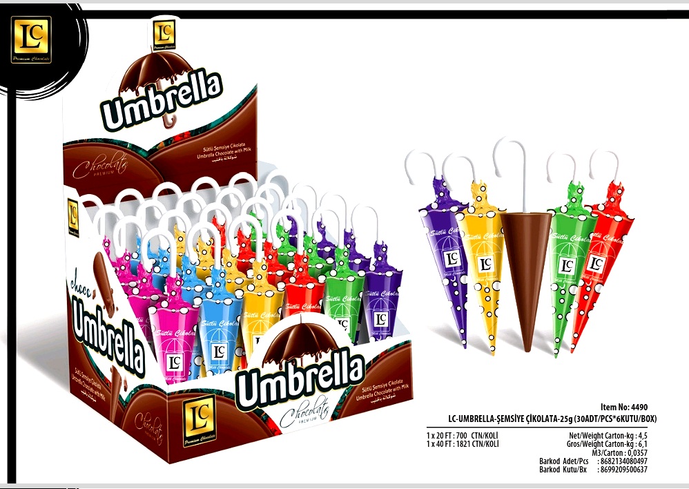 LC ŞEMSİYE PREMİUM SÜTLÜ ÇİKOLATA 25 GR (ADET FİYATI 30 TL. KUTU İÇİ 30 ADET)