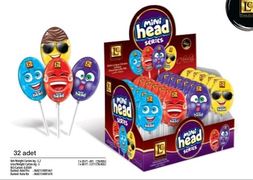 LC L'ART DU CHOCOLAT MİNİ HEAD SÜTLÜ LOLİPOP ÇİKOLATA (ADET FİYATI 25 TL. KUTU İÇİ 32 ADETTİR)