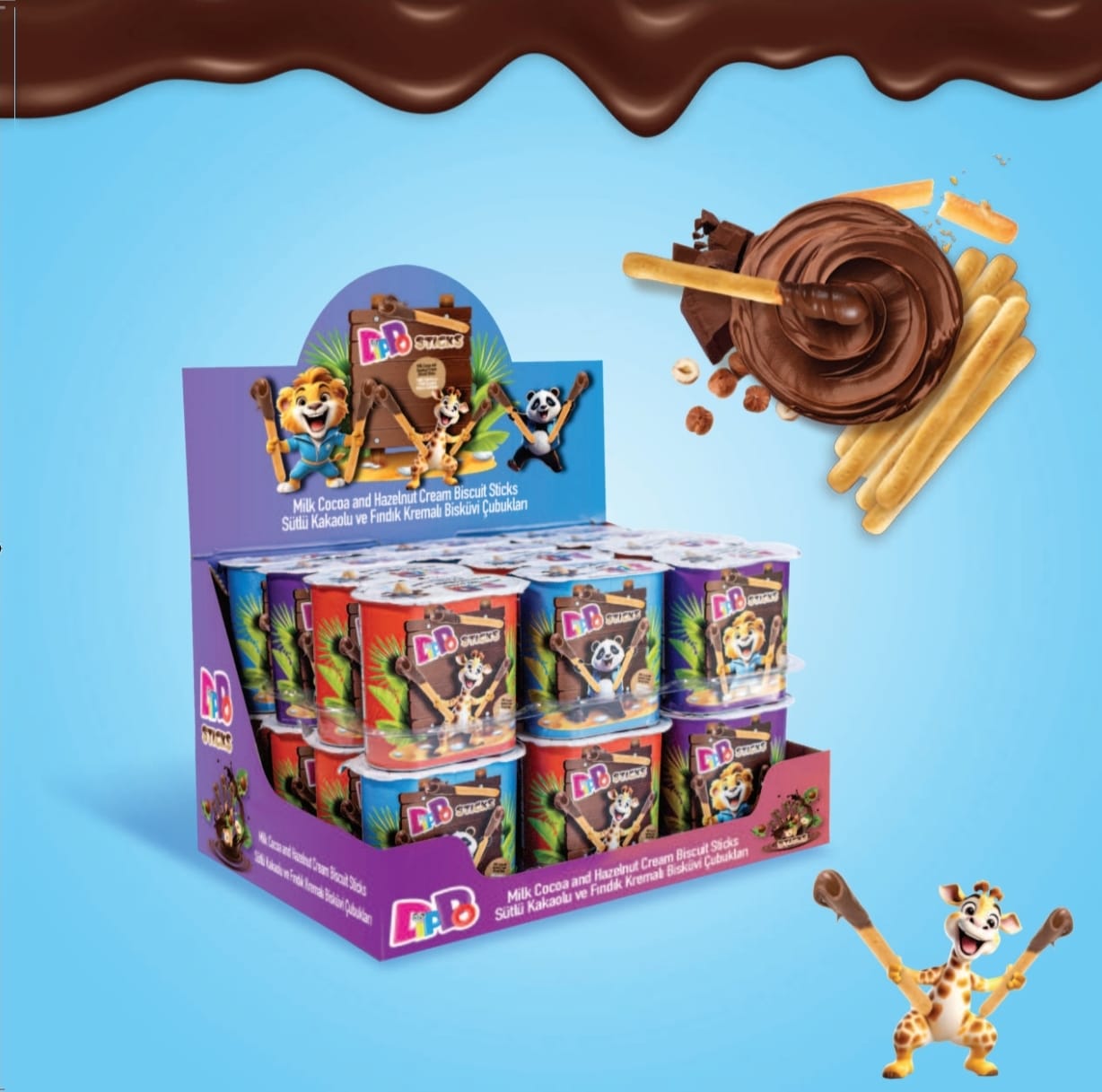 DİPPO SÜTLÜ KAKAO VE FINDIK KREMALI GRİSSİNİ 50 GR (ADET FİYATI 17 TL'DİR. DİSPLAY İÇİ 24 ADETTİR)