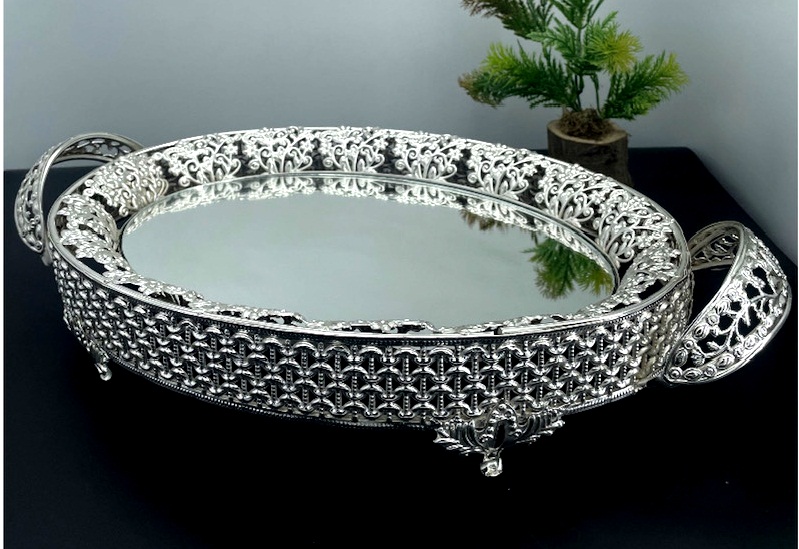 HK SEKİZGEN GÜMÜŞ TEPSİ 25 VE 30 CM (İKİLİ TAKIM)