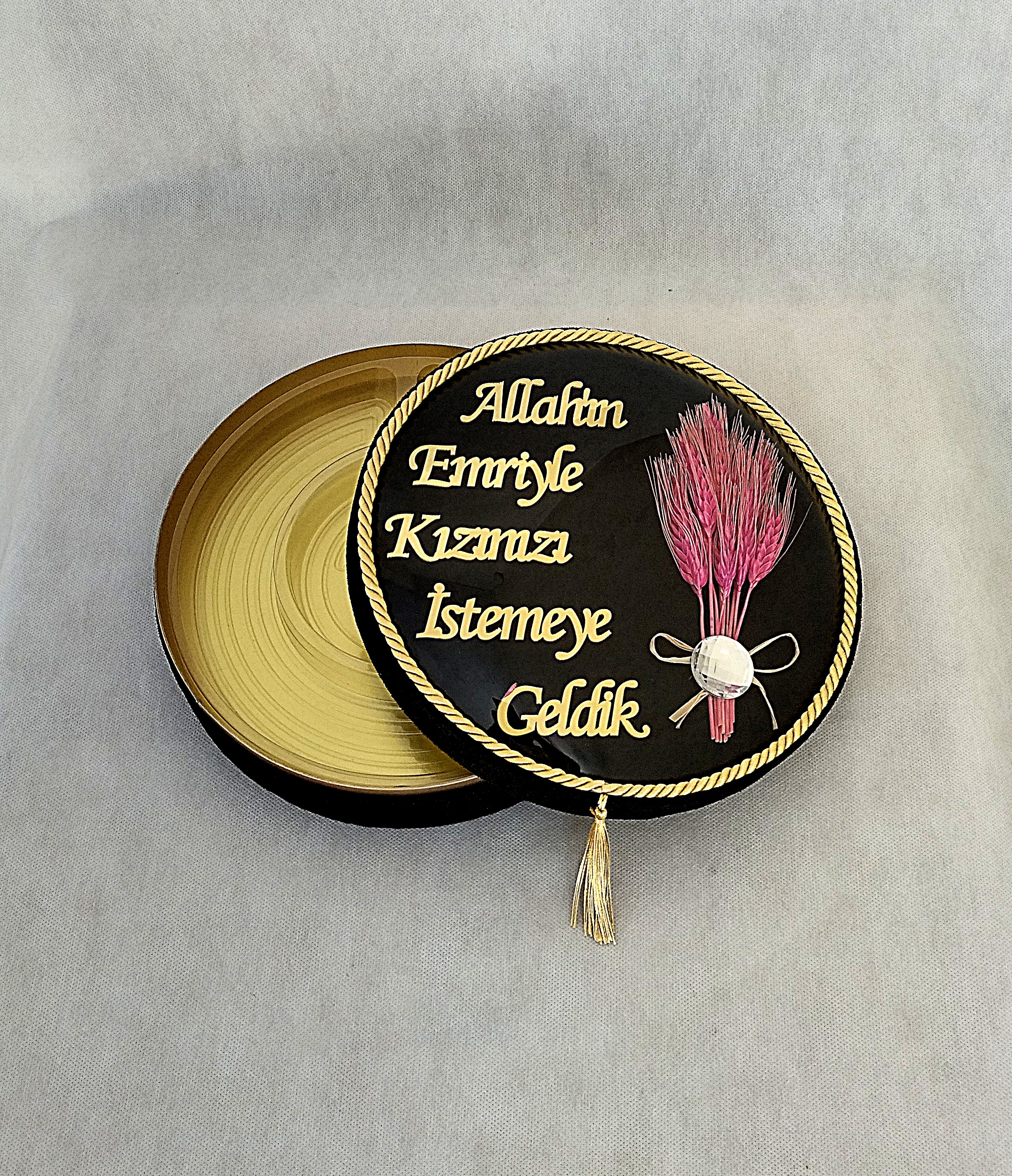 NR BOMBE CAMLI KIZ İSTEME YAZILI KADİFE KUTU KIRMIZI