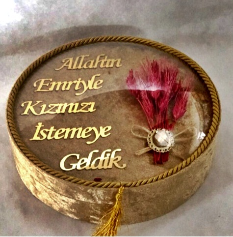 NR BOMBE CAMLI KIZ İSTEME YAZILI KADİFE KUTU KAHVERENGİ