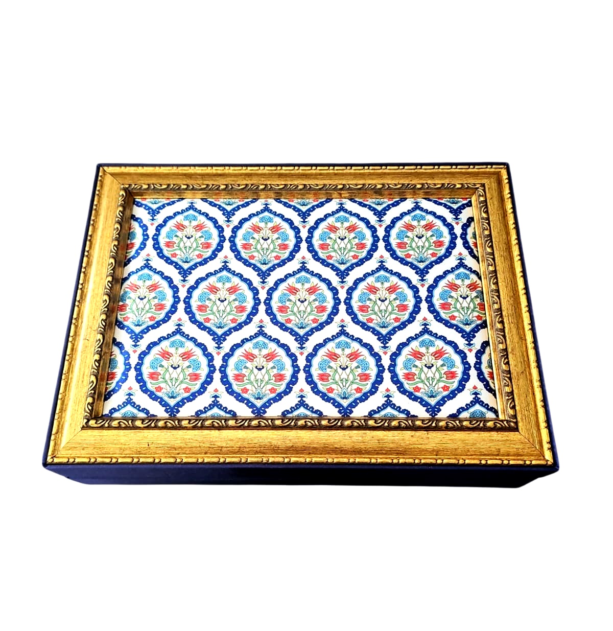 NR BOMBE CAMLI ÇİÇEKLİ LACİVERT ÇİKOLATA KUTUSU