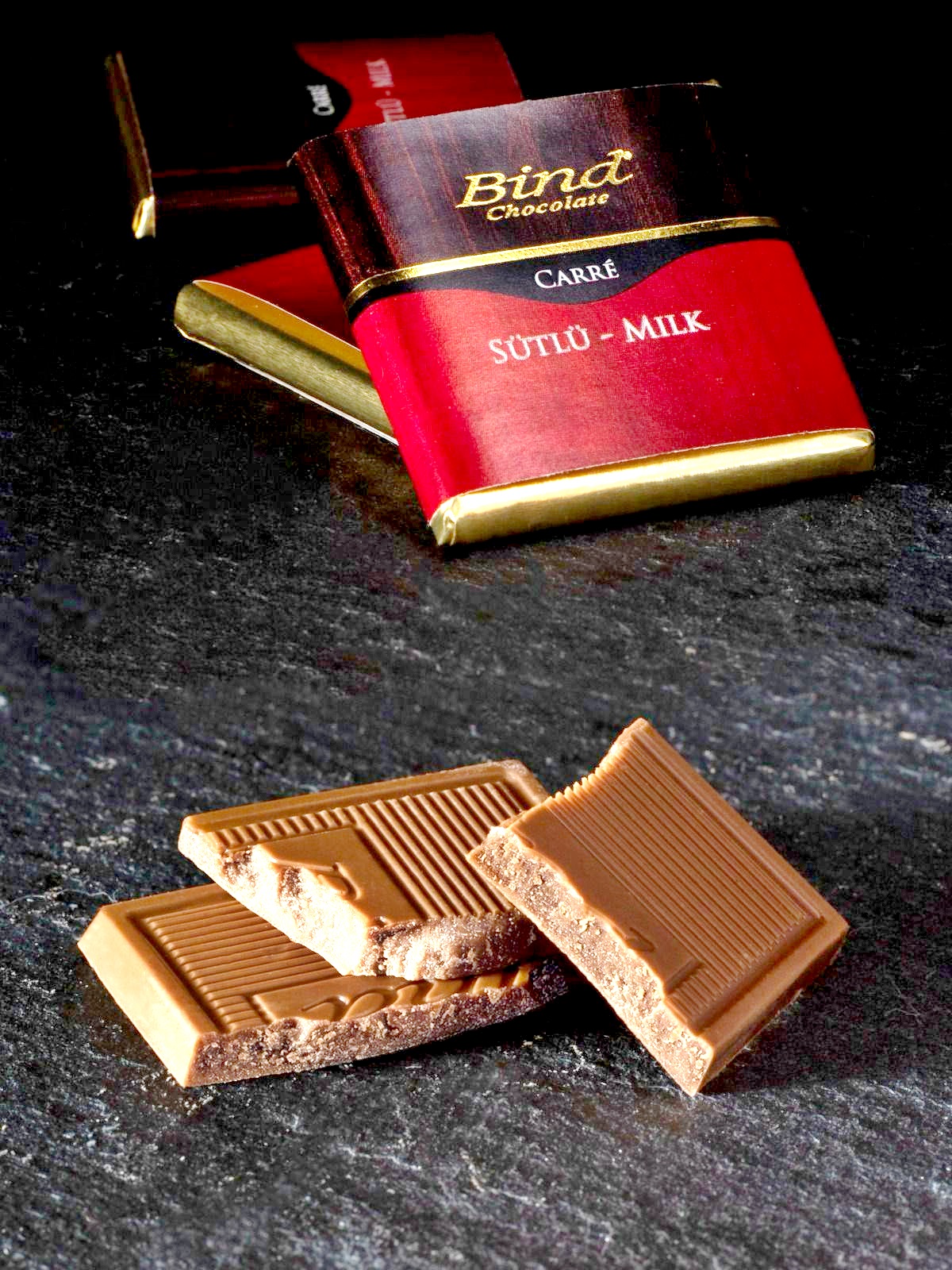 BİND ANTEP FISTIKLI KARE KAHVERENGİ OLUKLU SARGILI ÇİKOLATA PL013 (KG FİYATI 1327 TL'DİR. KOLİ İÇİ 2 KG'DİR)