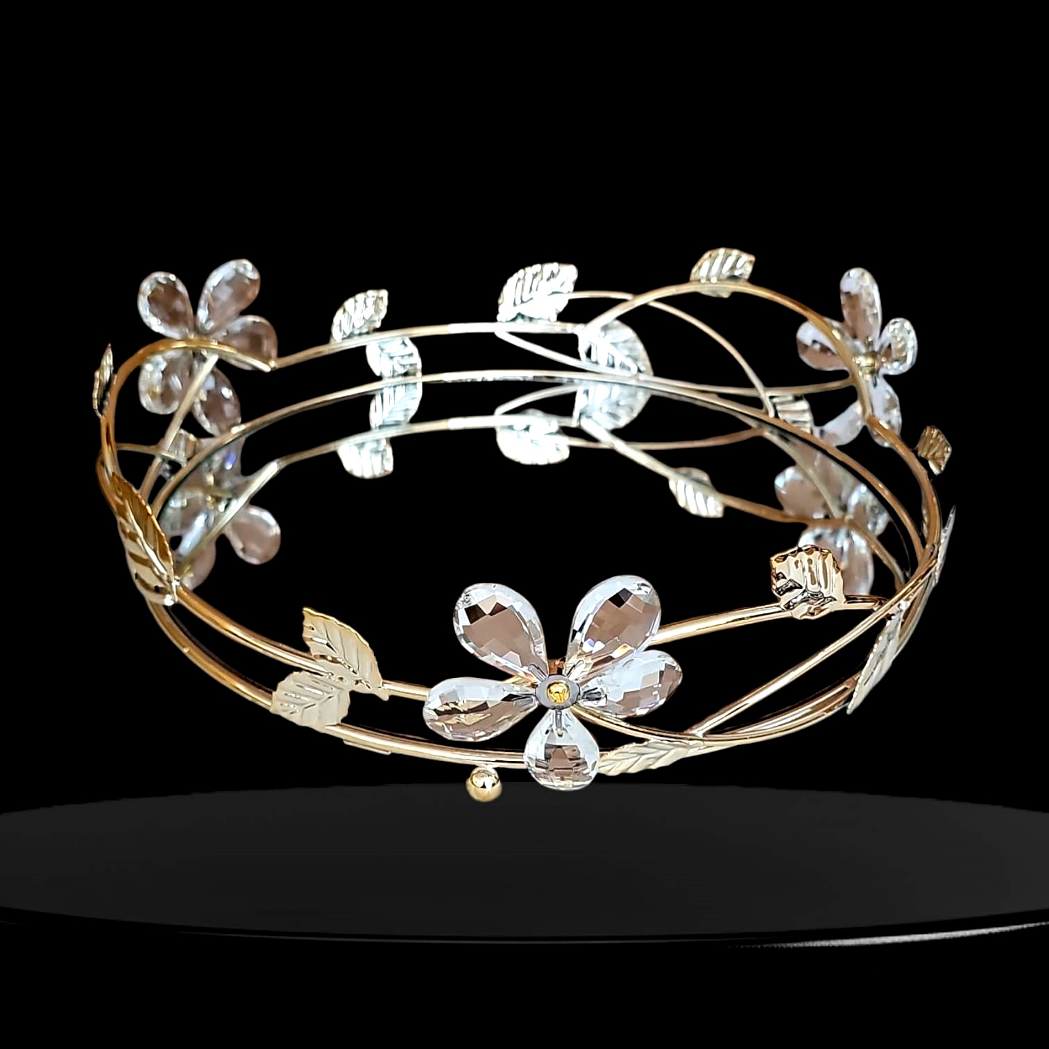 BZ-JX21A - ALTIN ÇİÇEK KRİSTAL TAŞLI YUVARLAK AYNALI TEPSİ 40 CM BÜYÜK BOY