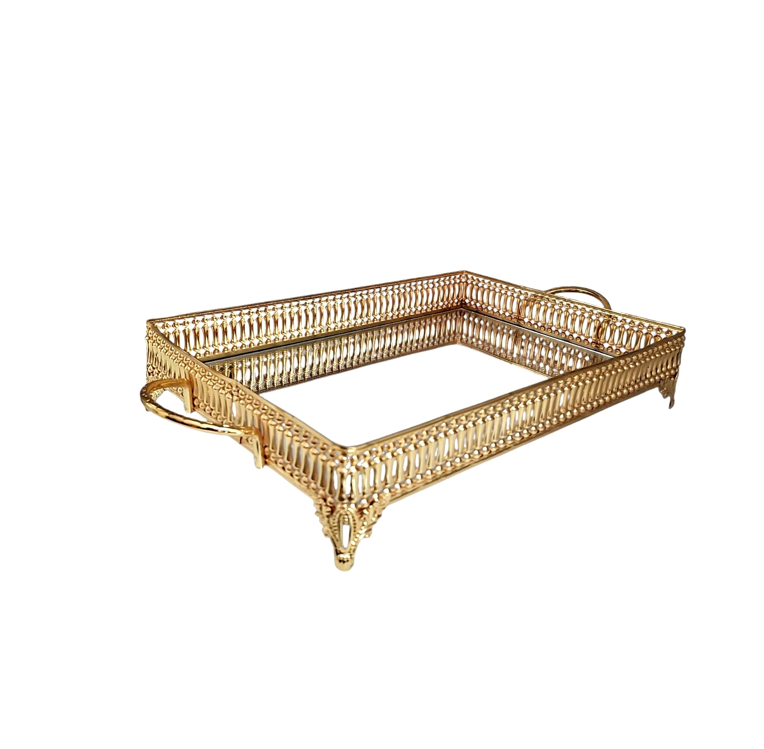 BKZ 4022-A LEYLAK PIRLANTA TAŞLI YUVARLAK AYNALI TEPSİ 36,5x27x5 cm ALTIN