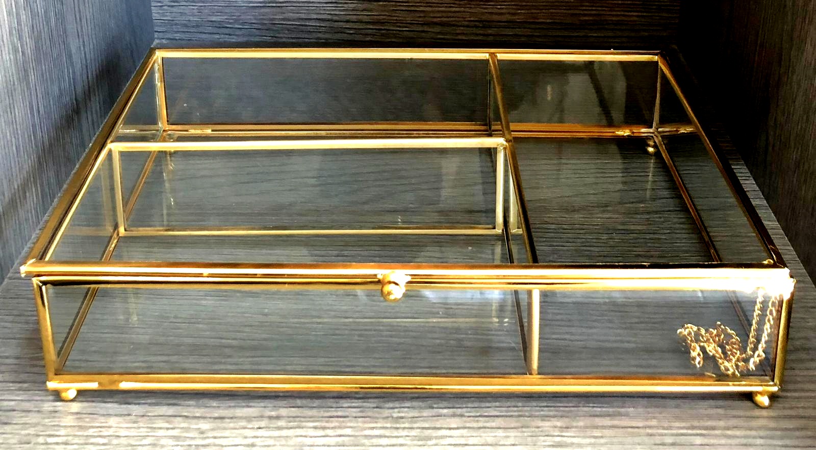 ALV 4 BÖLMELİ CAM KUTU GÜMÜŞ 30*20 CM