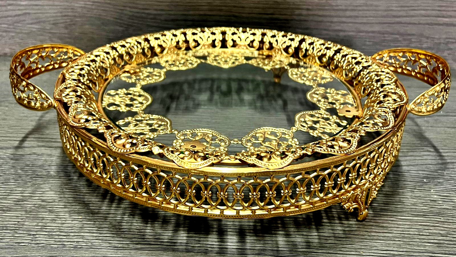 ALV TS 113-1 YUVARLAK CAMLI TEPSİ ALTIN BÜYÜK BOY
