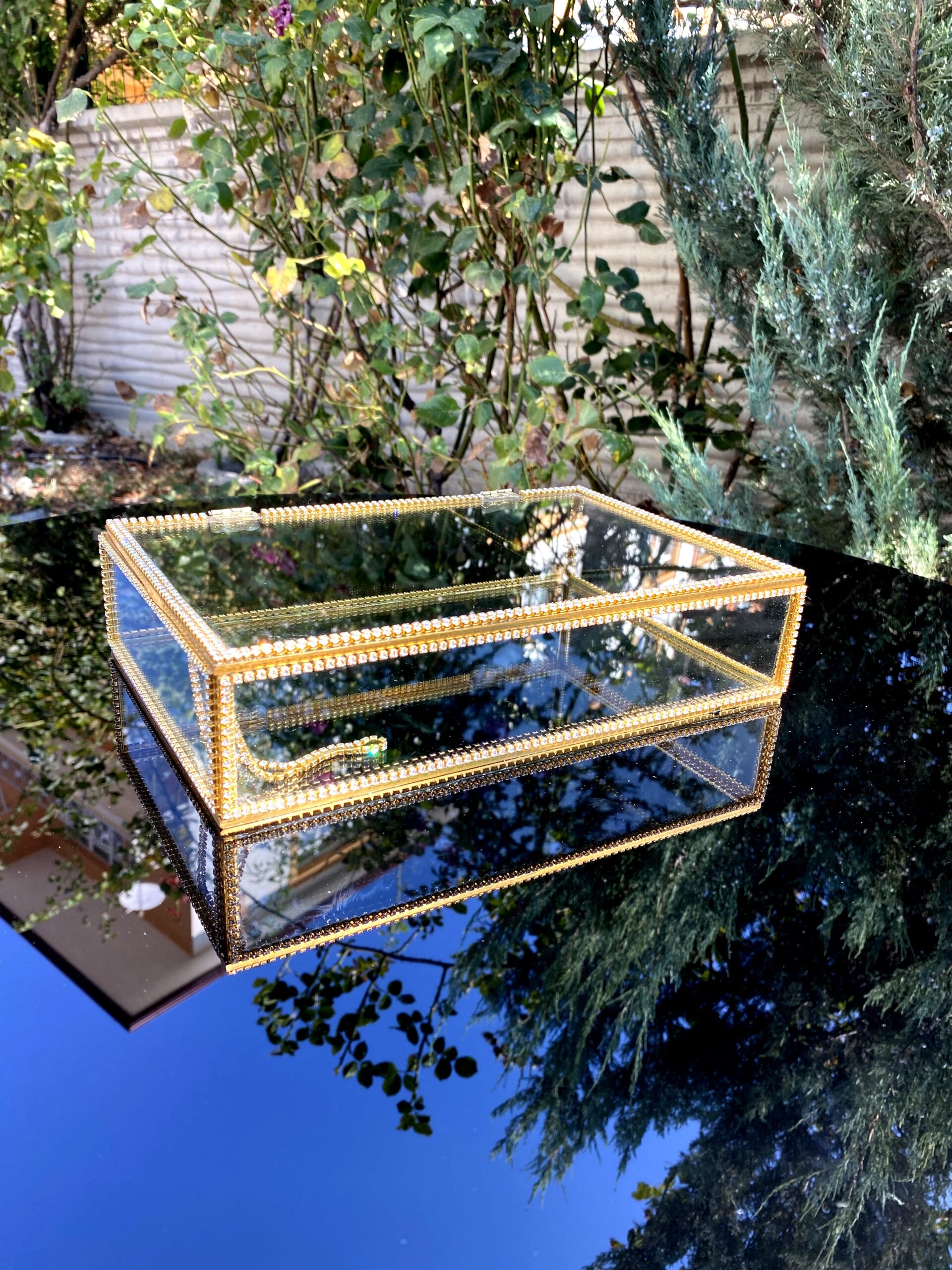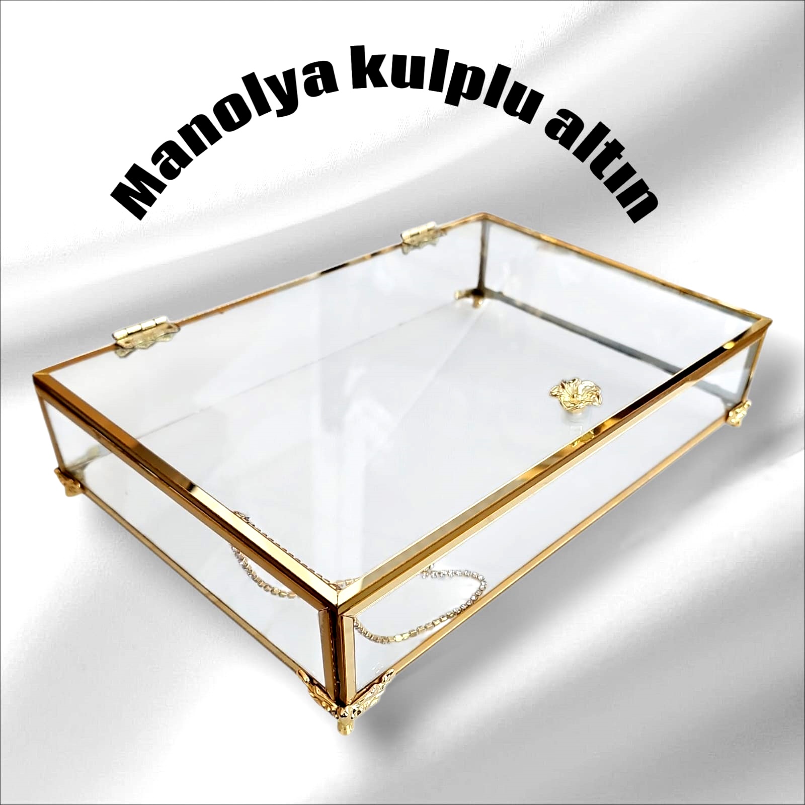 KDD PLEXİ TAŞLI ALTIN CAM KUTU AYAKLI 25*16 CM - 236