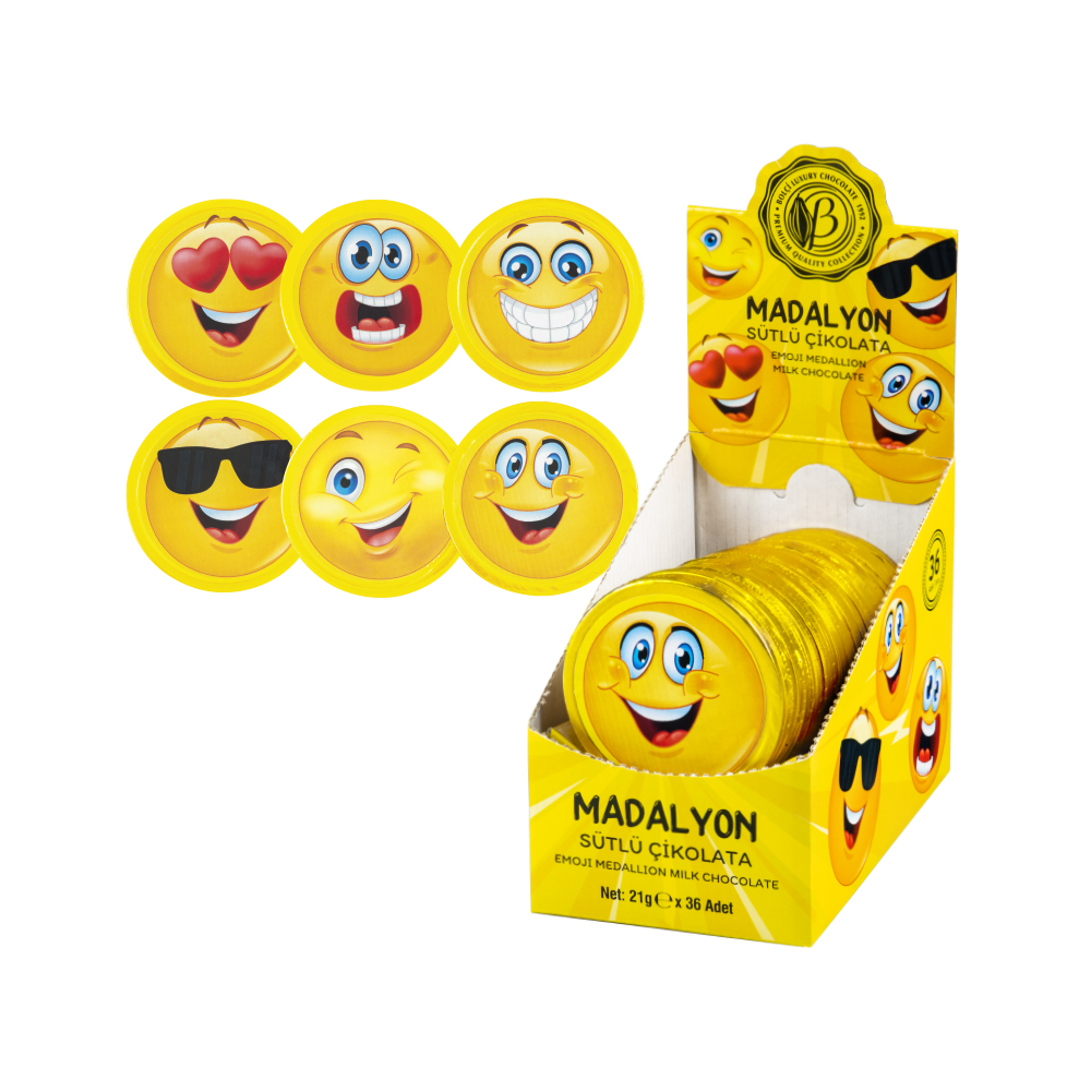 BOLÇİ BK175 SÜTLÜ MADALYON EMOJİ ÇİKOLATA PAKET 23GRx34 ADET (ADET FİYATI 27 TL'DİR.)