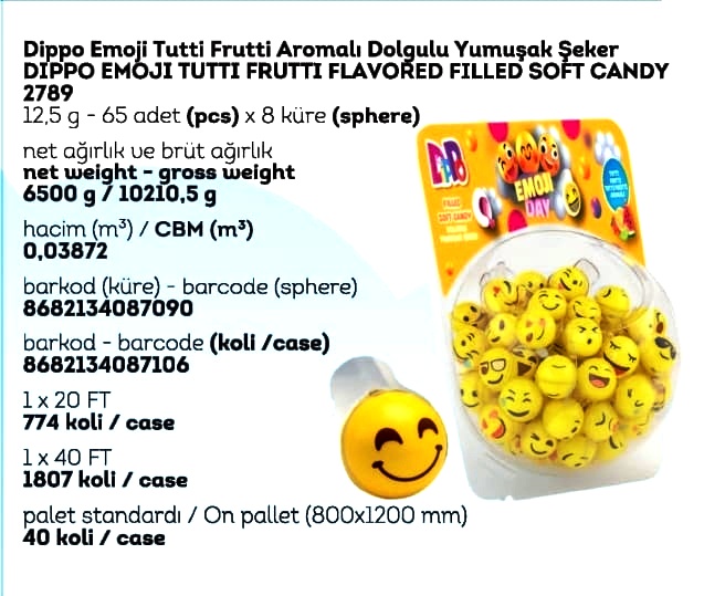 DİPPO DOLGULU YUMUŞAK ŞEKER EMOJİ (ADET FİYATI 9.5 TL'DİR. KÜRE İÇİ 65 ADETTİR.)