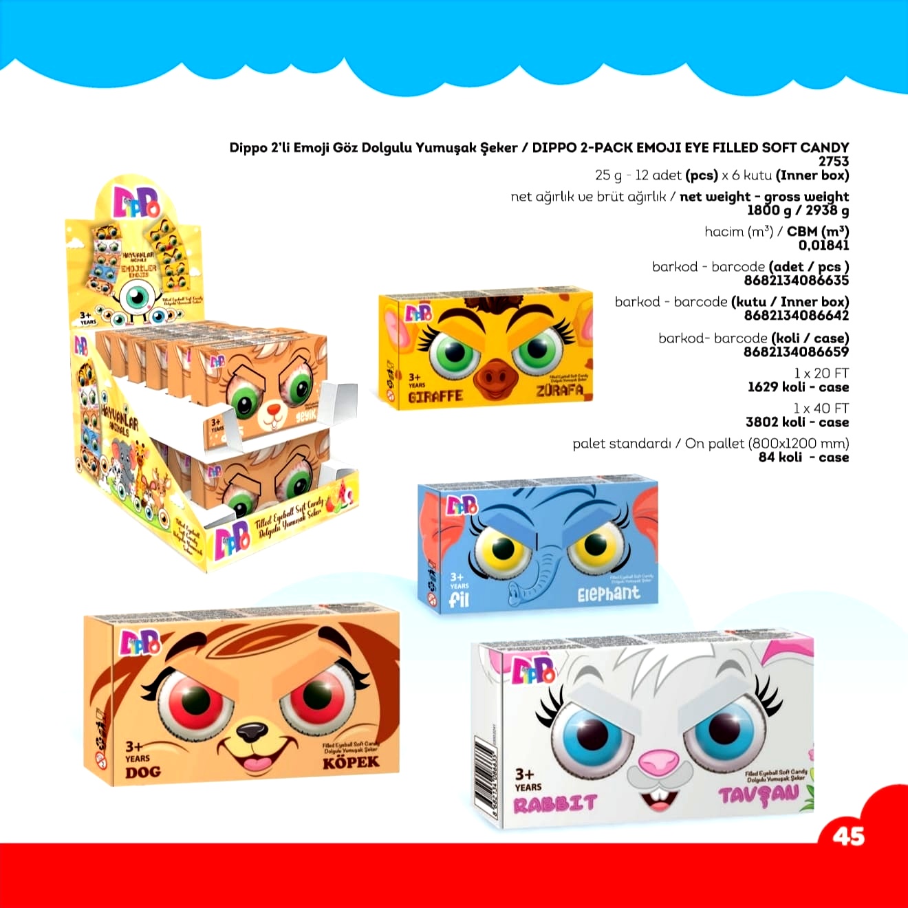 DİPPO DOLGULU YUMUŞAK ŞEKER 2'Lİ (ADET FİYATI 27 TL'DİR. DİSPLAY İÇİ 12 ADETTİR.)