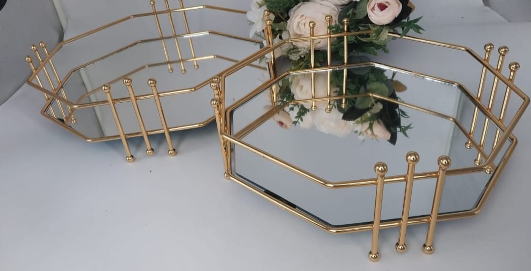 HK SEKİZGEN GÜMÜŞ TEPSİ 25 VE 30 CM (İKİLİ TAKIM)