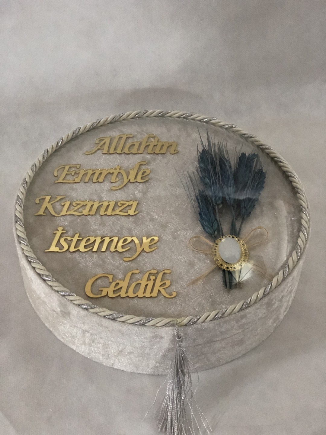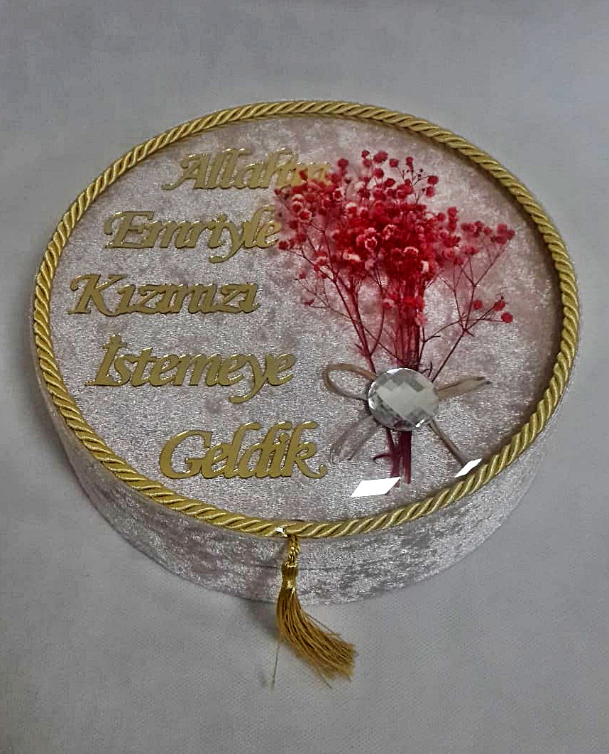 NR BOMBE CAMLI KIZ İSTEME YAZILI KADİFE KUTU BEYAZ