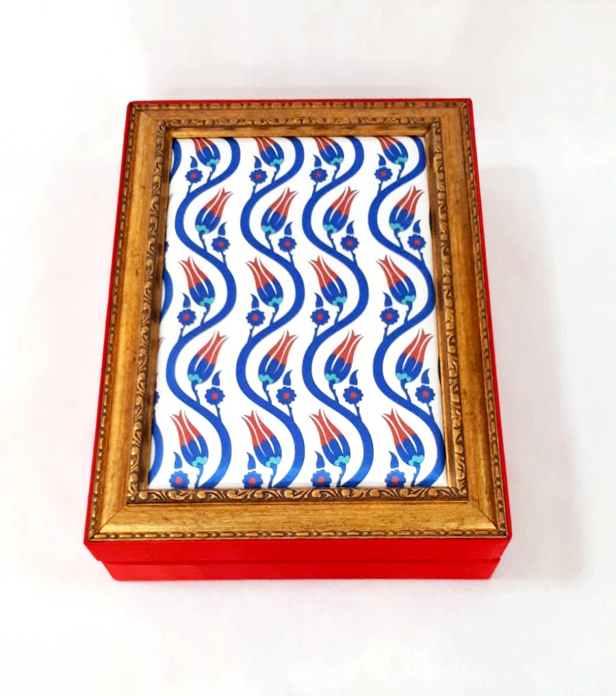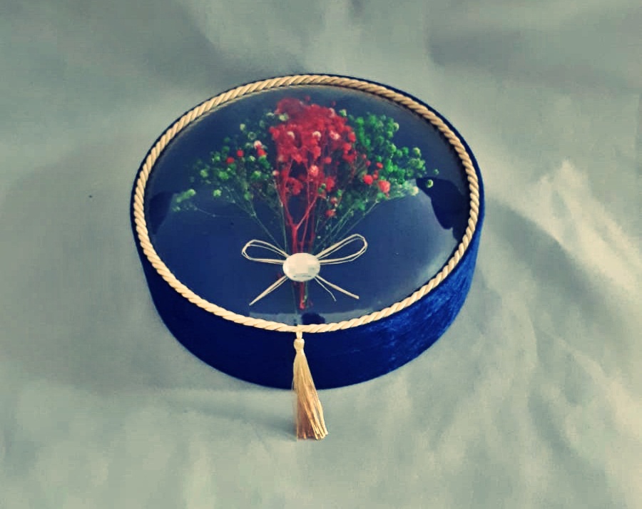 NR BOMBE CAMLI ÇİÇEKLİ LACİVERT ÇİKOLATA KUTUSU
