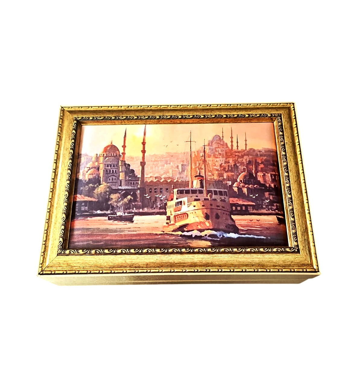 NR BOMBE CAMLI ÇİÇEKLİ ALTIN ÇİKOLATA KUTUSU