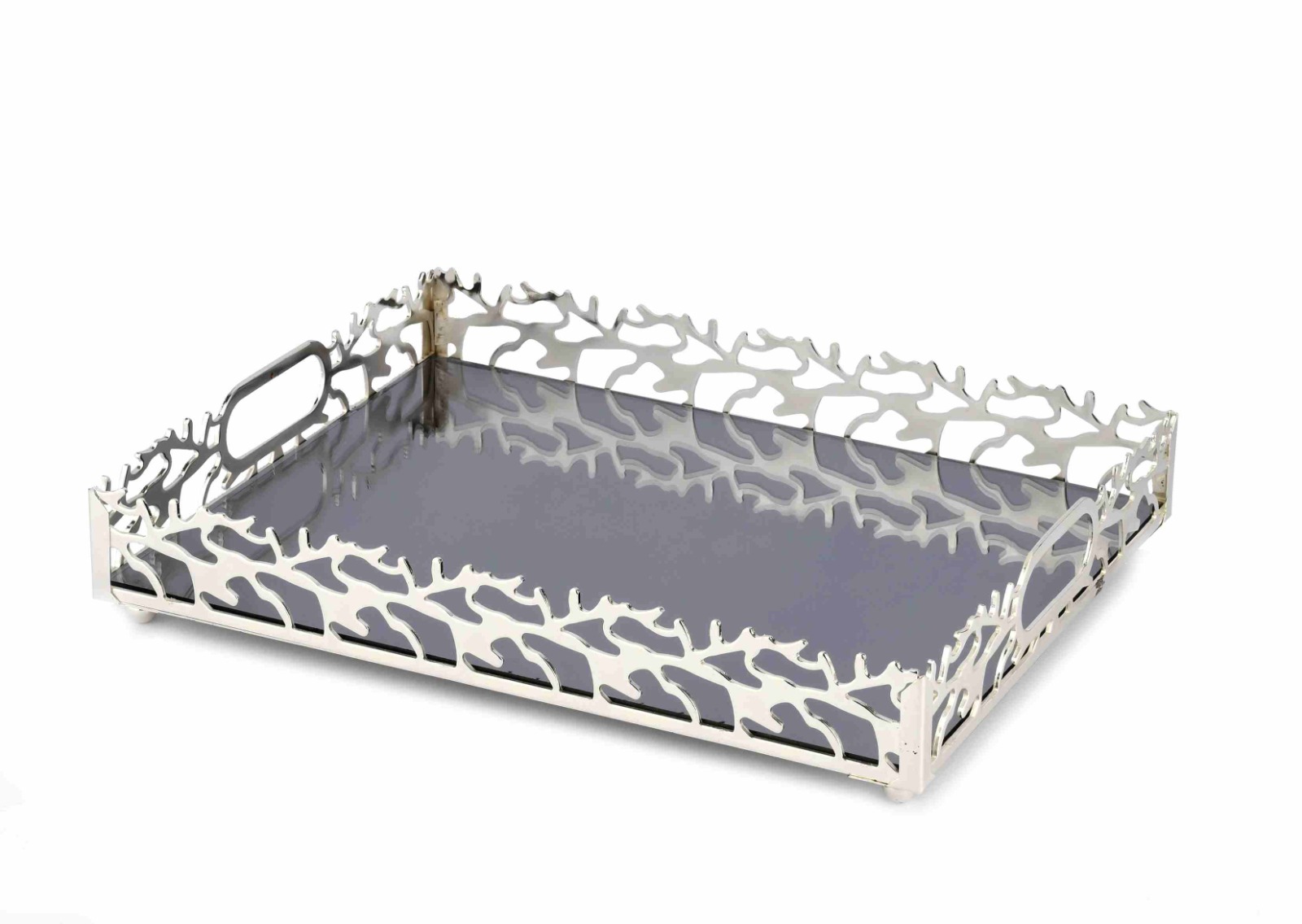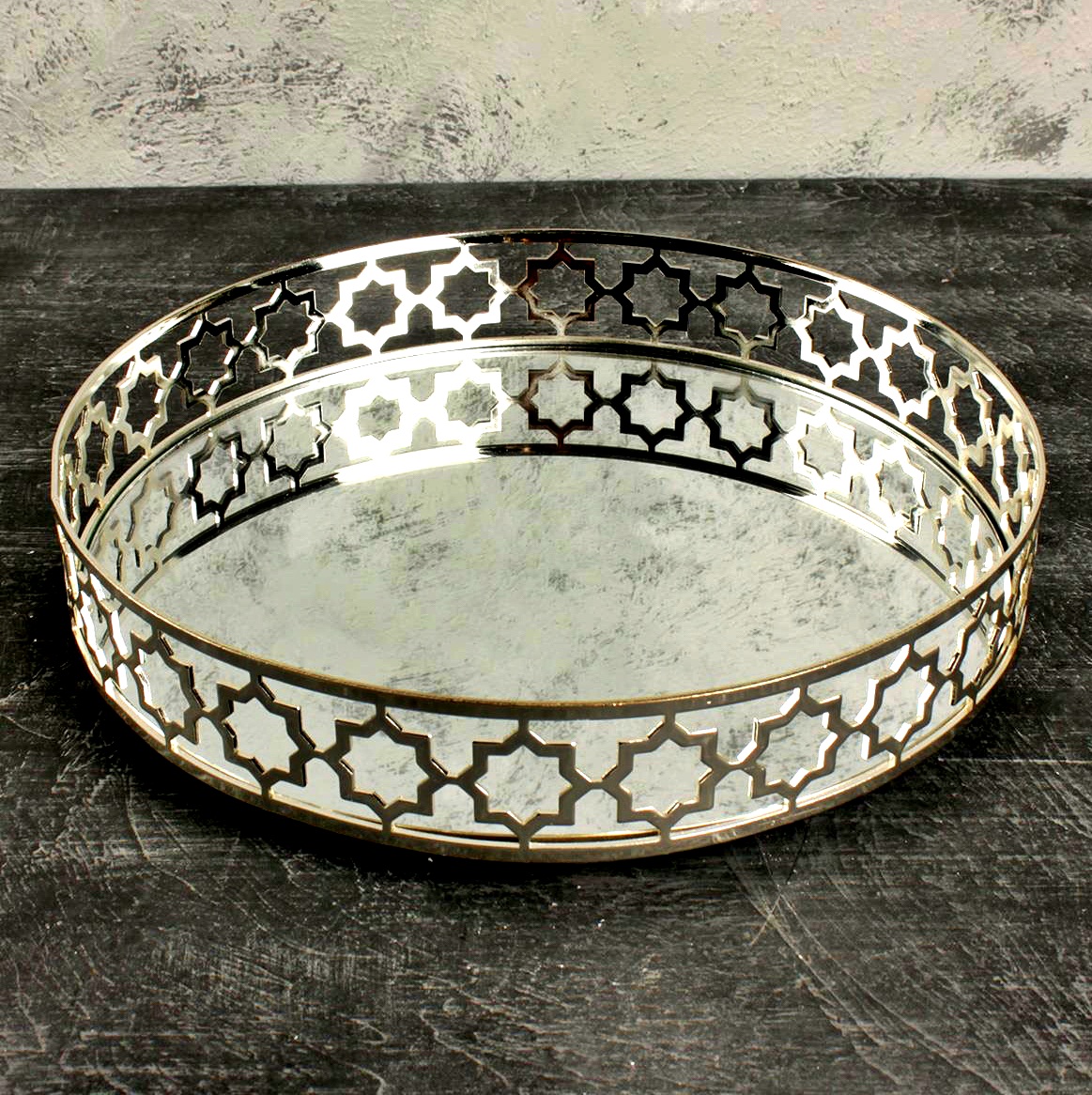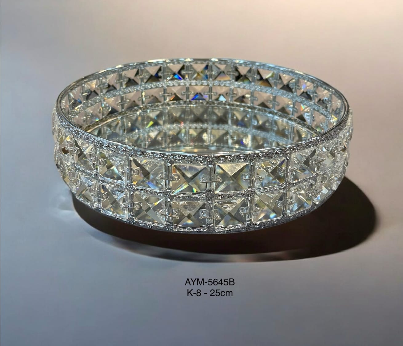 BZ-JX21G - GÜMÜŞ ÇİÇEK KRİSTAL TAŞLI YUVARLAK AYNALI TEPSİ 30 CM KÜÇÜK BOY