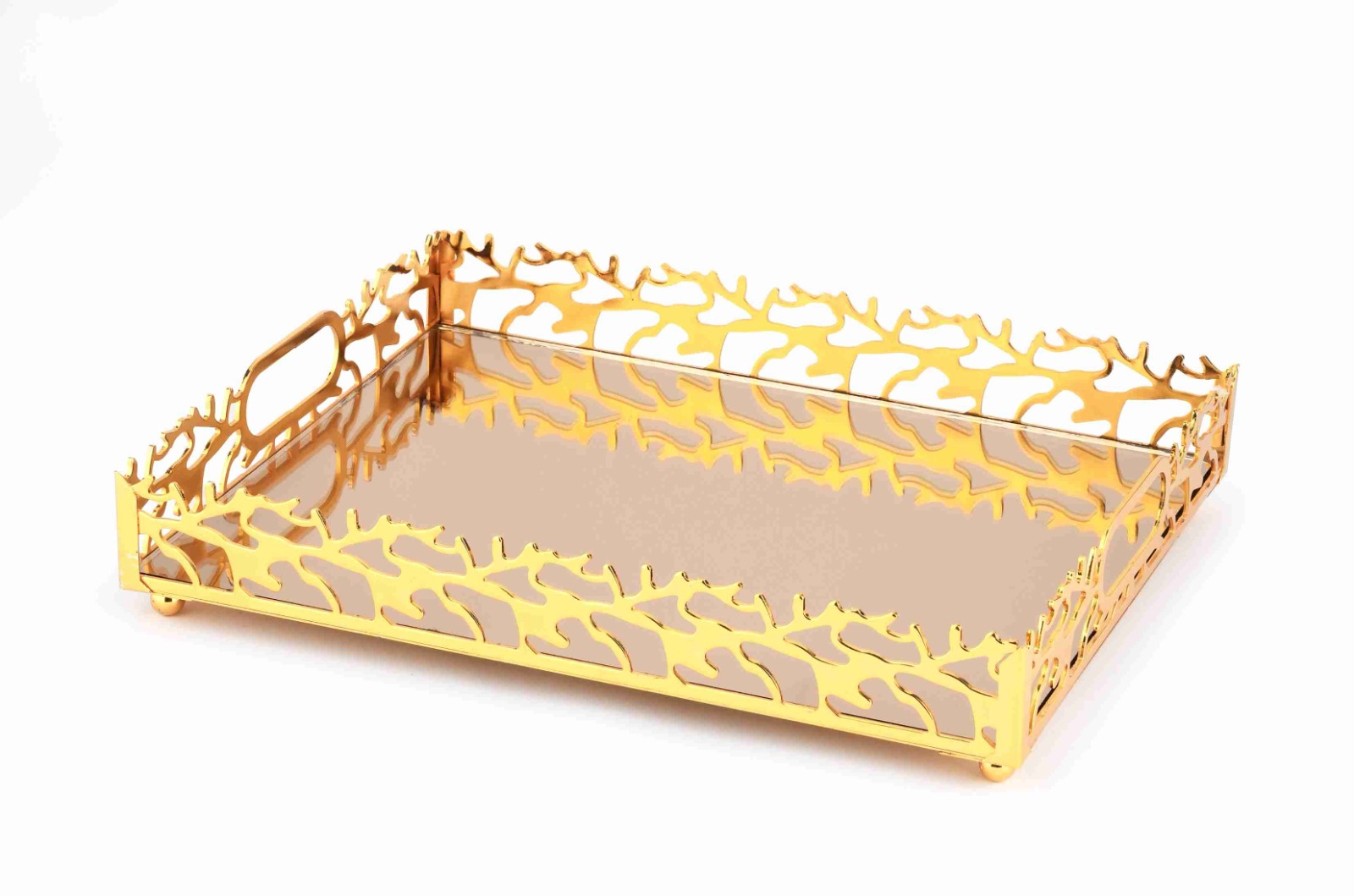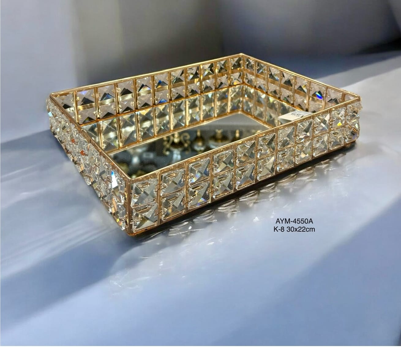 BZ-JX21A - ALTIN ÇİÇEK KRİSTAL TAŞLI YUVARLAK AYNALI TEPSİ 30 CM KÜÇÜK BOY
